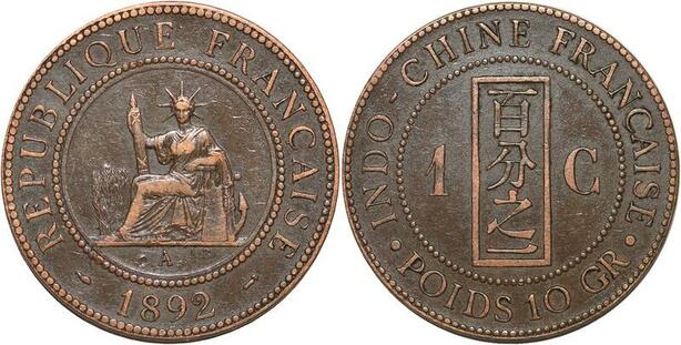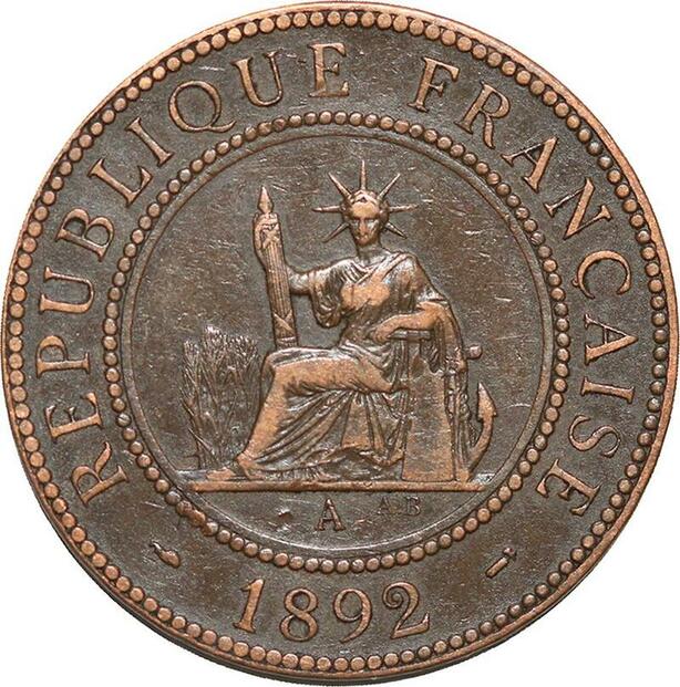 R3338 French Indochina 1 Cent Liberty 1892 A Paris XF+ -> Make Offer