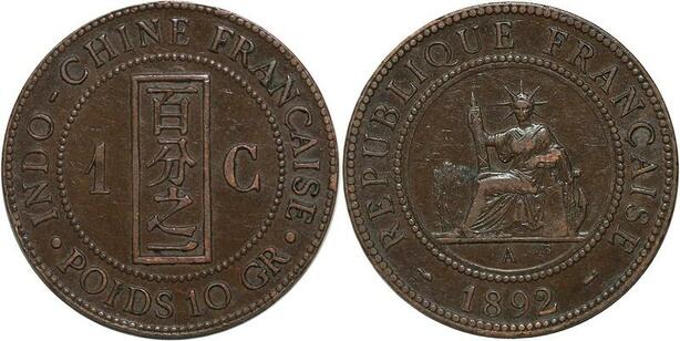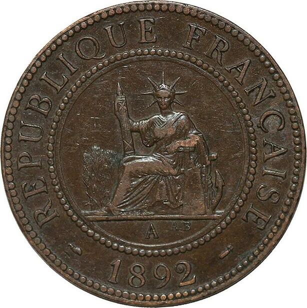 R3340 French Indochina 1 Cent Liberty 1892 A Paris AU -> Make Offer