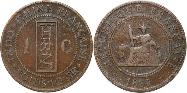 R3349 French Indochina 1 Cent Liberty 1889 A Paris -> Make Offer