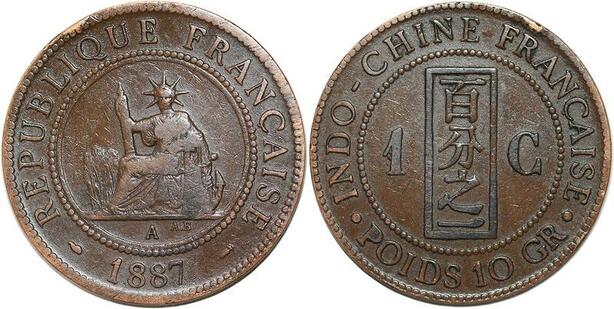 R3353 French Indochina 1 Cent Liberty 1887 A Paris -> Make Offer