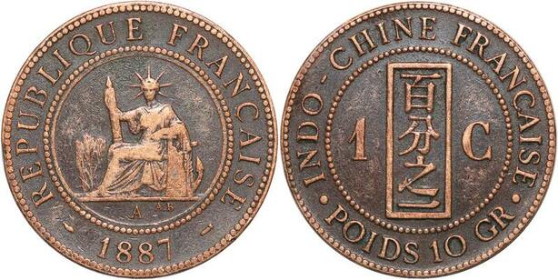 R3356 French Indochina 1 Cent Liberty 1887 A Paris -> Make Offer