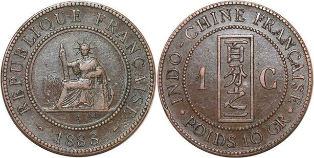 R3358 French Indochina 1 Cent Liberty 1885 A Paris AU -> Make Offer