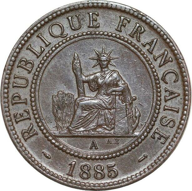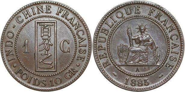 R3391 Rare French Indochina 1 Cent Liberty 1885 A Paris SUP AU -> Make Offer