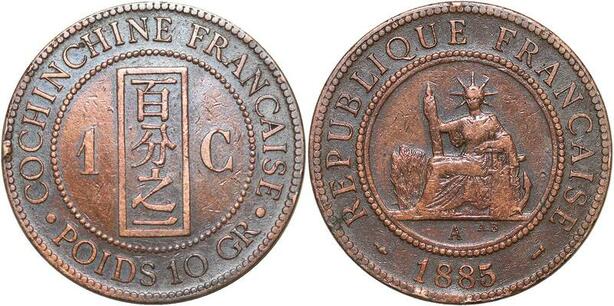 R3392 French Indochina 1 Cent Liberty 1885 A Paris -> Make Offer