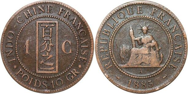R3404 French Indochina 1 Cent Liberty 1885 A Paris -> Make Offer