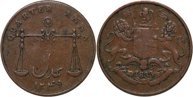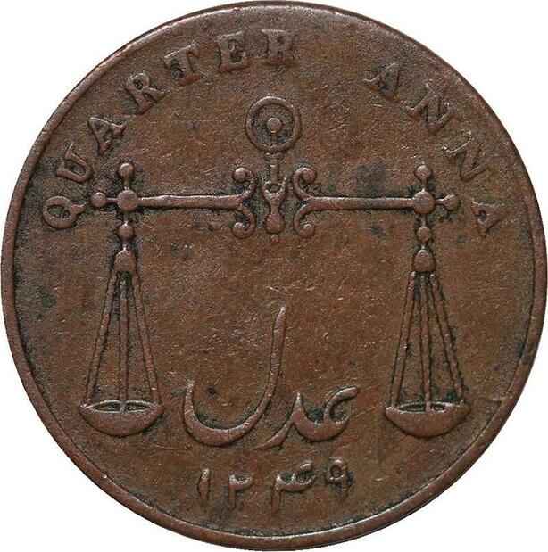 R3443 British India Bombay Presidency 1/4 Anna AH 1249 1833 -> Make Offer