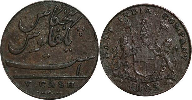 R3445 British India Madras Presidency 5 Cash 1803 -> Make Offer