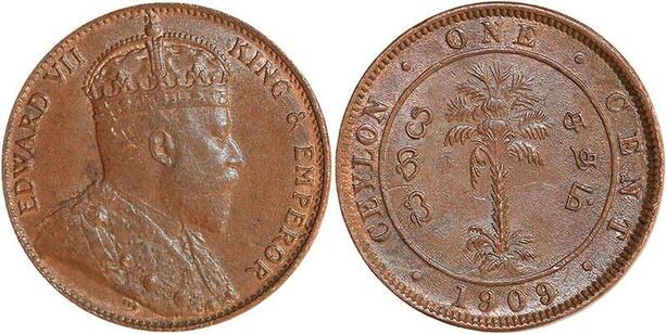 R3455 Rare Sri Lanka Ceylon One Cent Edward VII 1909 UNC -> Make Offer