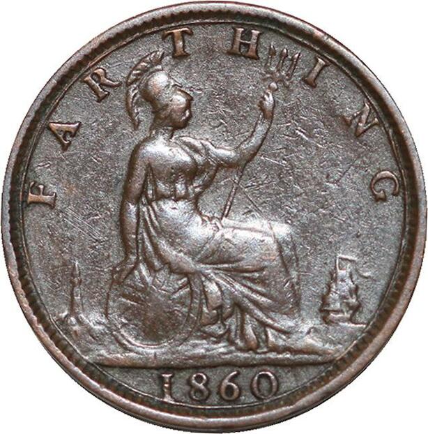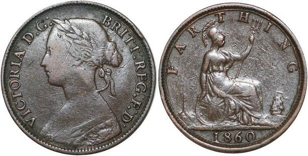 R3486 United Kingdom Farthing Victoria Toothes borders 1860 -> Make Offer