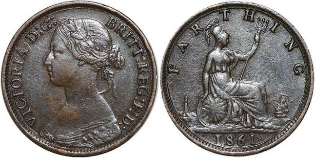 R3490 United Kingdom Farthing Victoria 1861 AU -> Make Offer