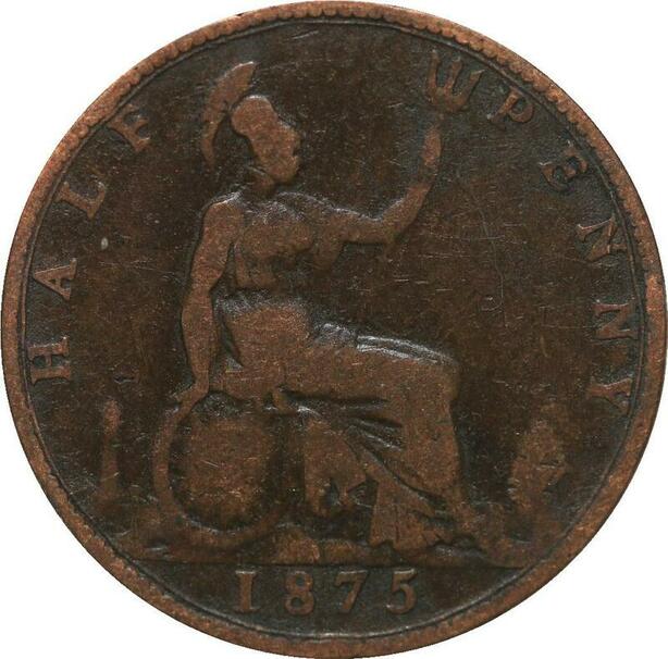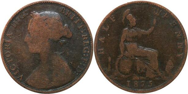 R3560 United Kingdom 1/2 Penny Victoria 1875 -> Make Offer