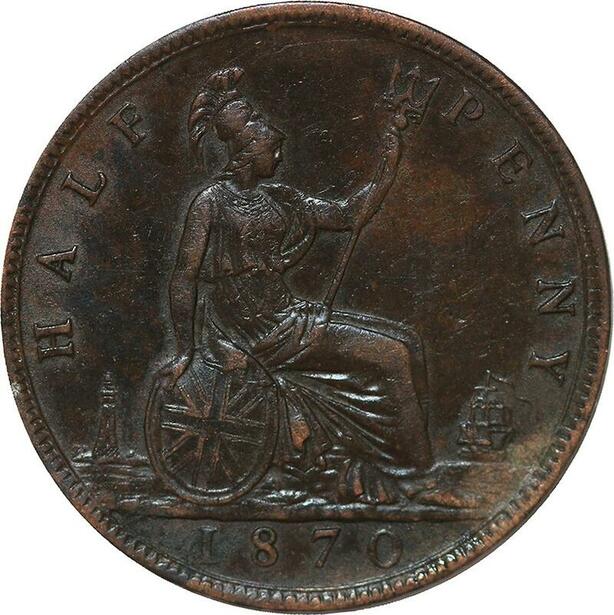R3564 United Kingdom 1/2 Penny Victoria 1870 -> Make Offer