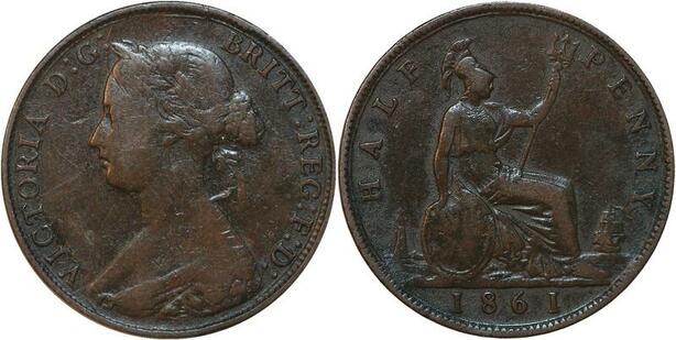 R3569 United Kingdom 1/2 Penny Victoria 1861 -> Make Offer