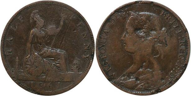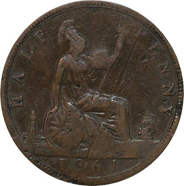 R3572 United Kingdom 1/2 Penny Victoria 1861 -> Make Offer