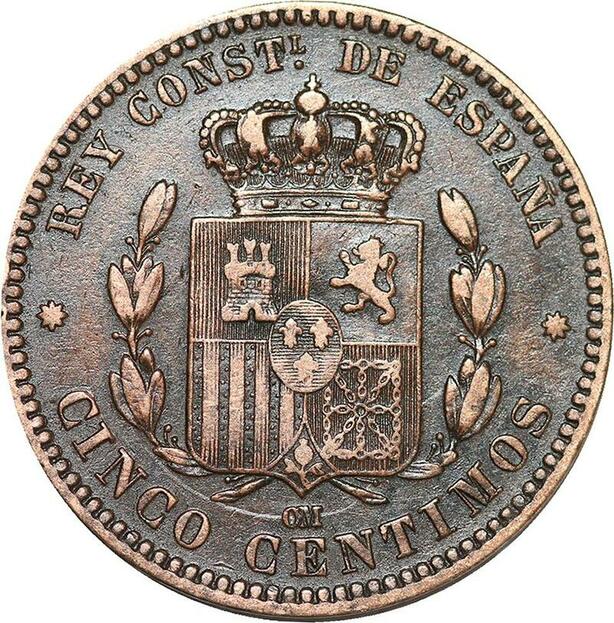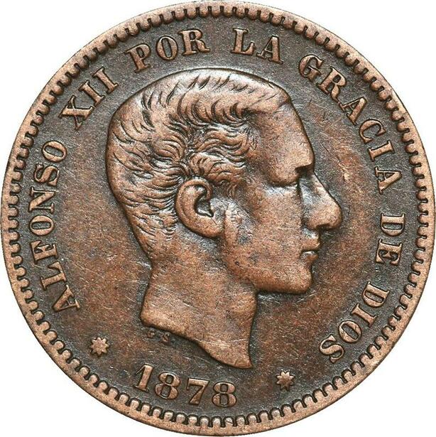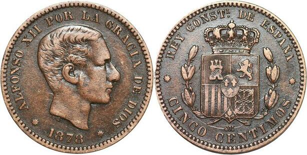 R3872 Spain 5 Centimos Alfonso XII 1878 OM Quality AU -> Make Offer