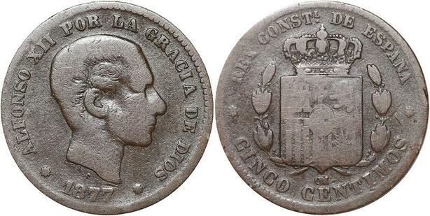 R3878 Spain 5 Centimos Alfonso XII 1877 OM -> Make Offer