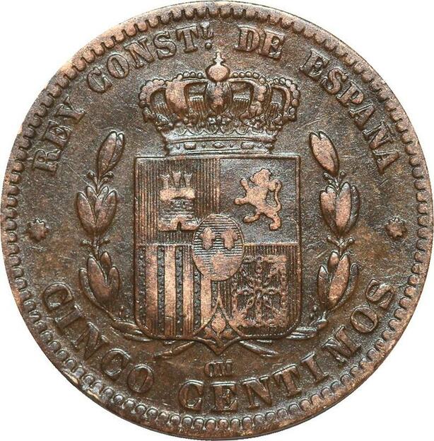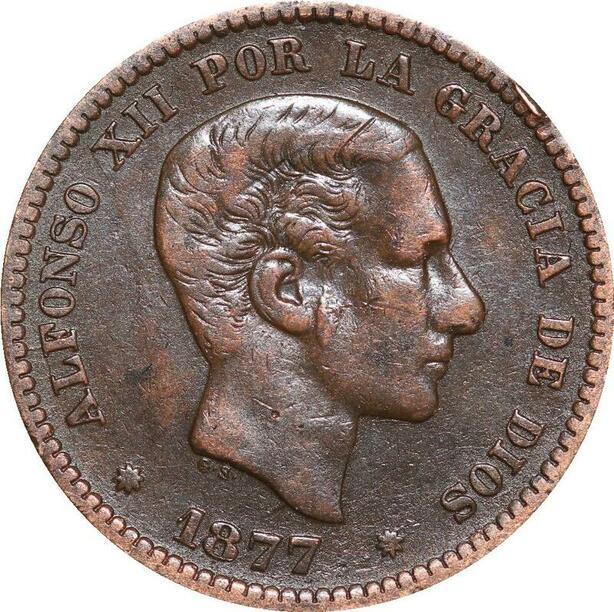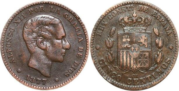 R3880 Spain 5 Centimos Alfonso XII 1877 OM -> Make Offer
