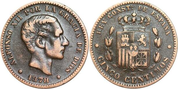 R3884 Spain 5 Centimos Alfonso XII 1878 OM -> Make Offer