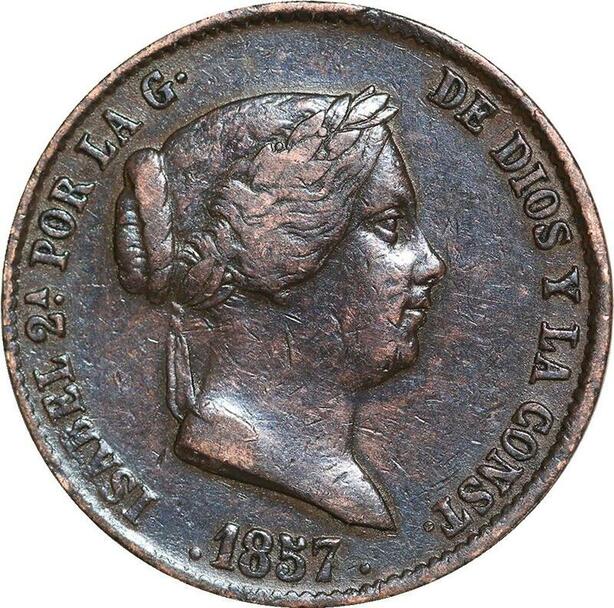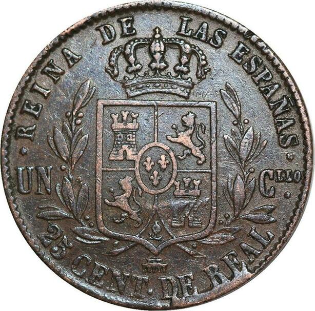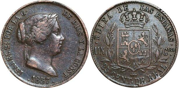 R3885 Spain 25 Centimos Isabel II 1857 Aqueduct -> Make Offer