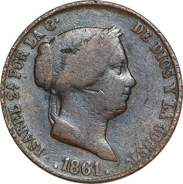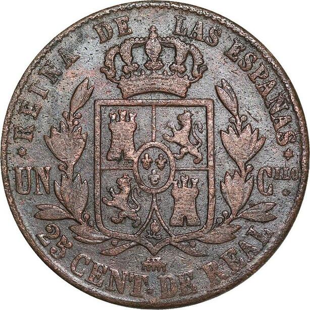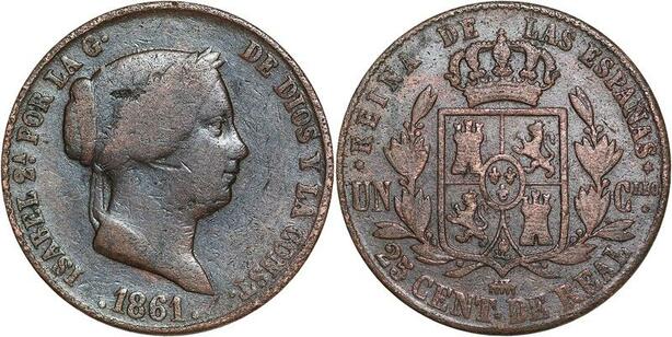 R3886 Spain 25 Centimos Isabel II 1861 Aqueduct -> Make Offer