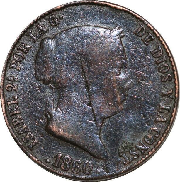 R3887 Spain 25 Centimos Isabel II 1860 Aqueduct -> Make Offer