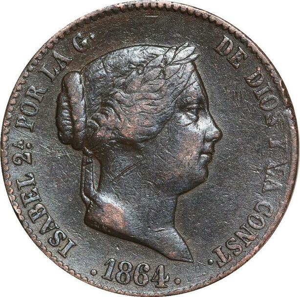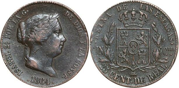 R3888 Spain 25 Centimos Isabel II 1864 Aqueduct -> Make Offer