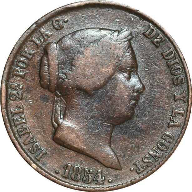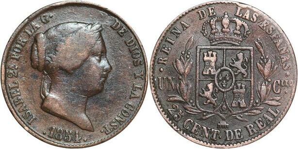 R3890 Spain 25 Centimos Isabel II 1854 Aqueduct -> Make Offer