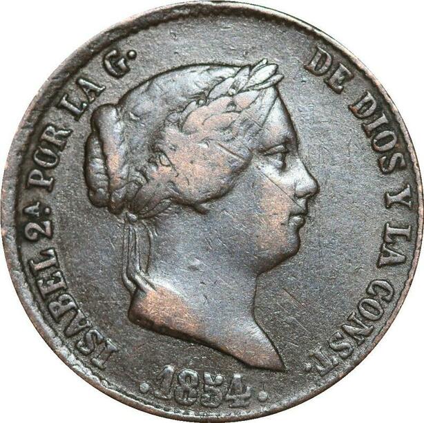 R3894 Spain 25 Centimos Isabel II 1854 Aqueduct -> Make Offer