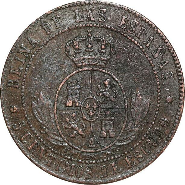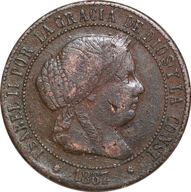 R3896 Spain 5 Centimos Isabel II 1867 OM 8 pointed star Barcelona -> Make Offer