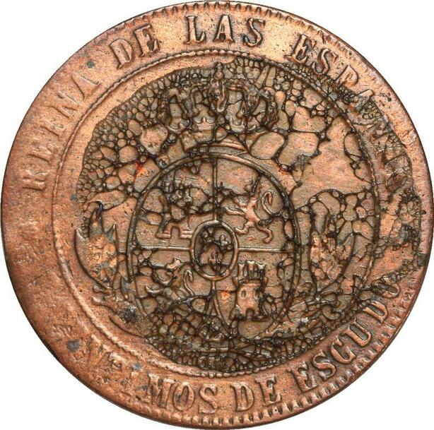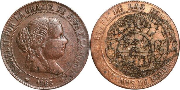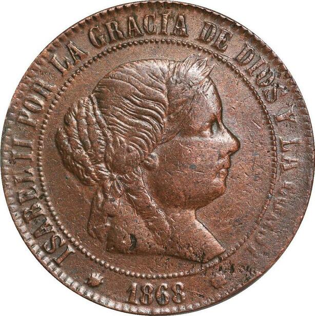 R3898 Spain 5 Centimos Isabel II 1868 OM 8 pointed star Barcelona -> Make Offer