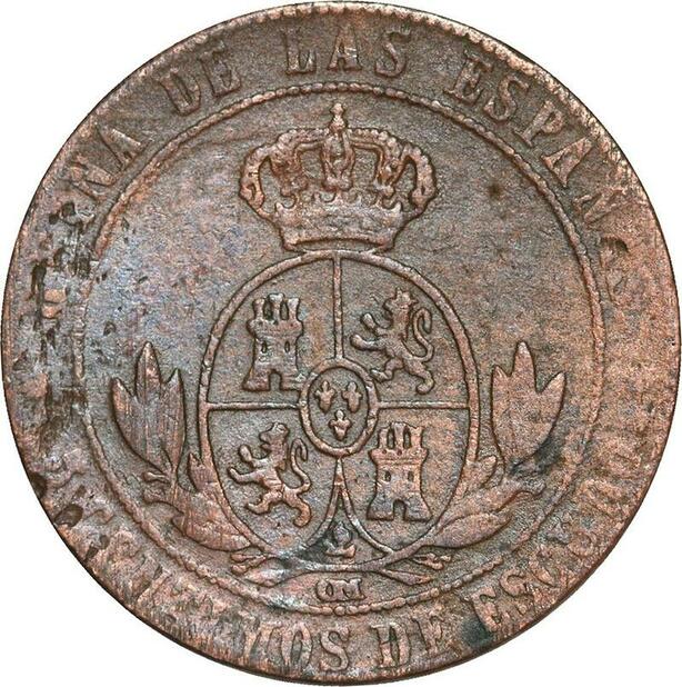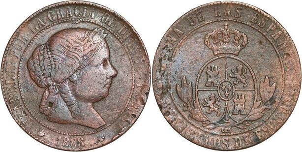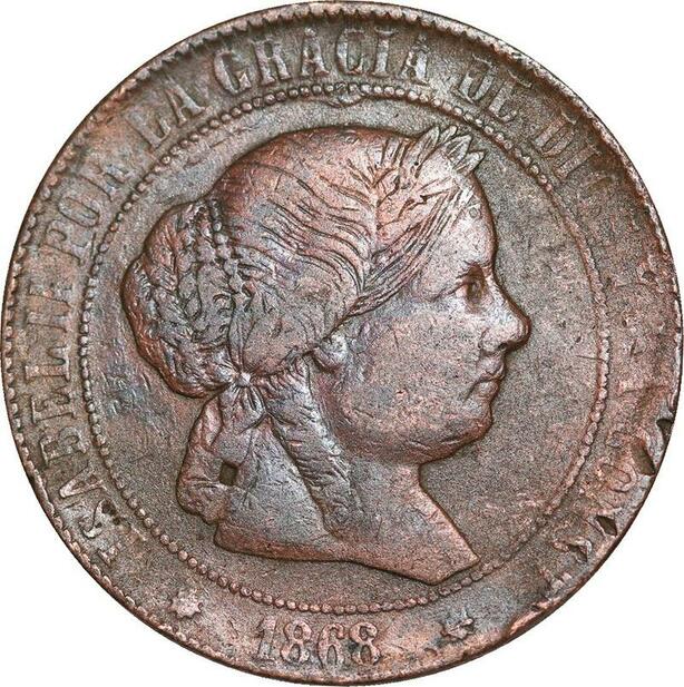 R3909 Spain 5 Centimos Isabel II 1868 OM 8 pointed star Barcelona -> Make Offer