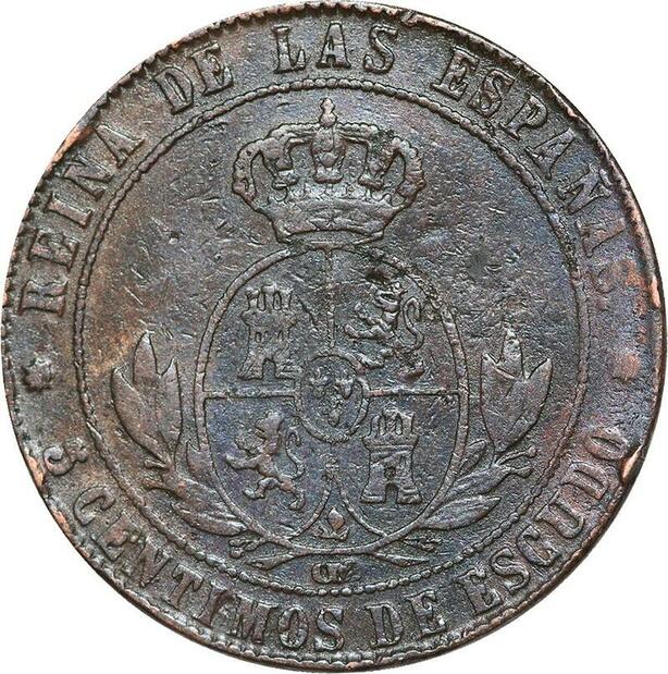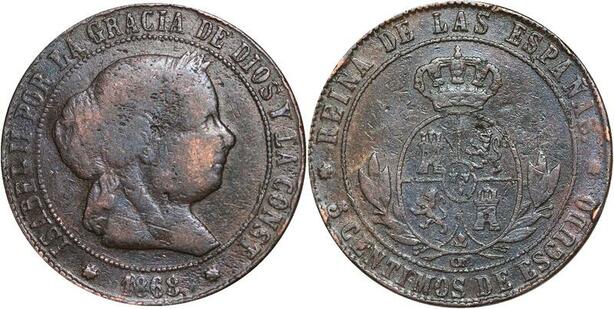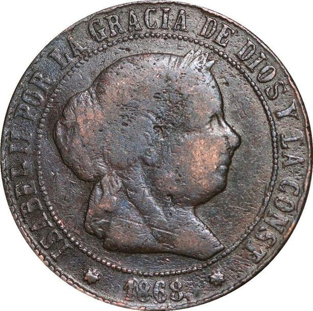 R3911 Spain 5 Centimos Isabel II 1868 OM 8 pointed star Barcelona -> Make Offer