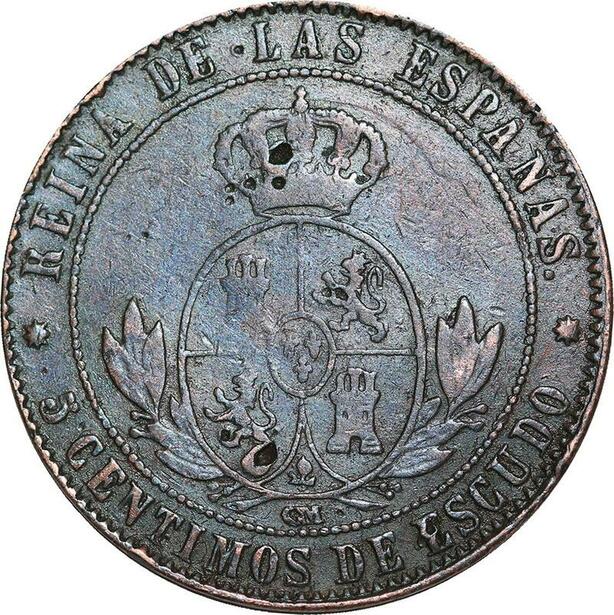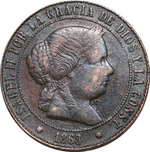 R3913 Spain 5 Centimos Isabel II 1868 OM 8 pointed star Barcelona -> Make Offer