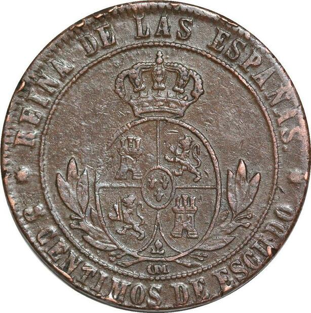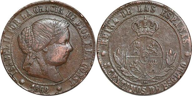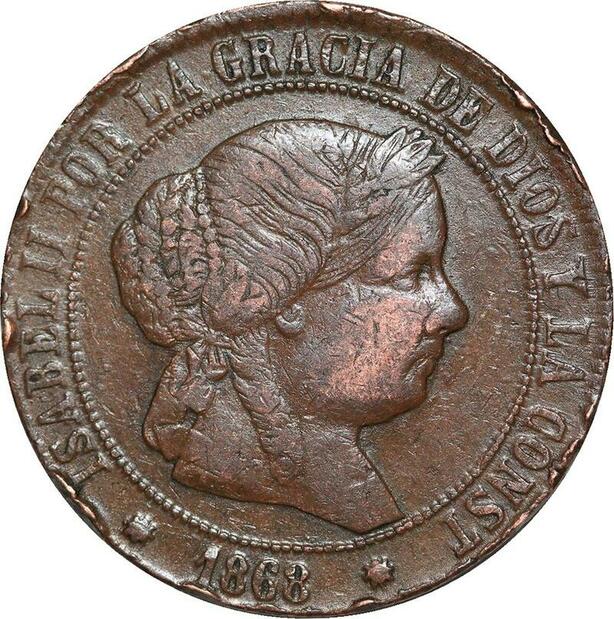 R3915 Spain 5 Centimos Isabel II 1868 OM 8 pointed star Barcelona -> Make Offer