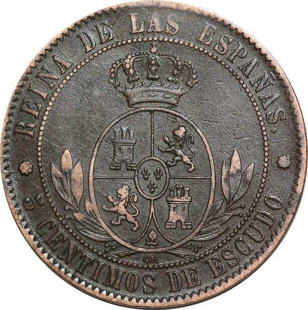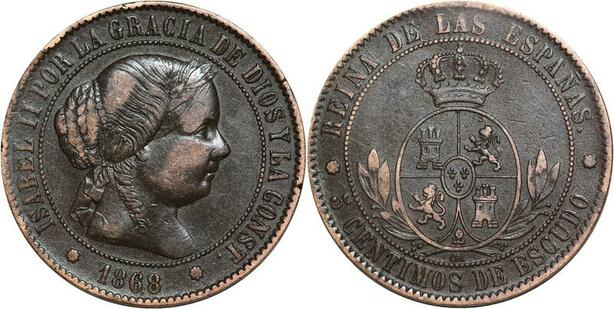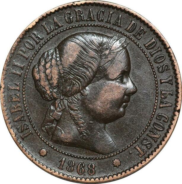 R3916 Spain 5 Centimos Isabel II 1868 OM 8 pointed star Barcelona -> Make Offer
