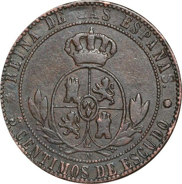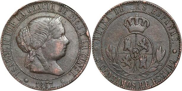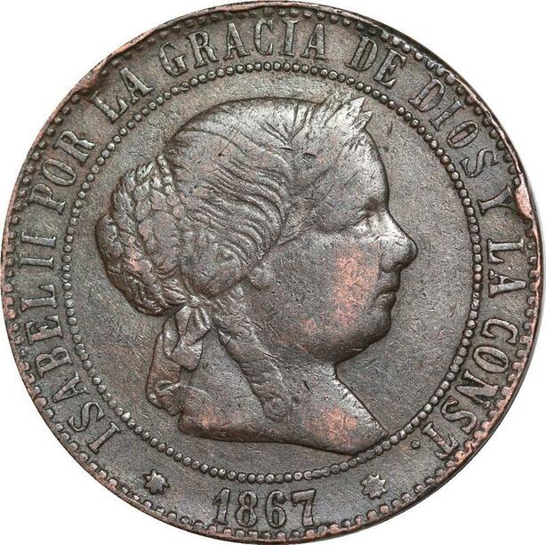 R3923 Spain 5 Centimos Isabel II 1867 OM 8 pointed star Barcelona -> Make Offer