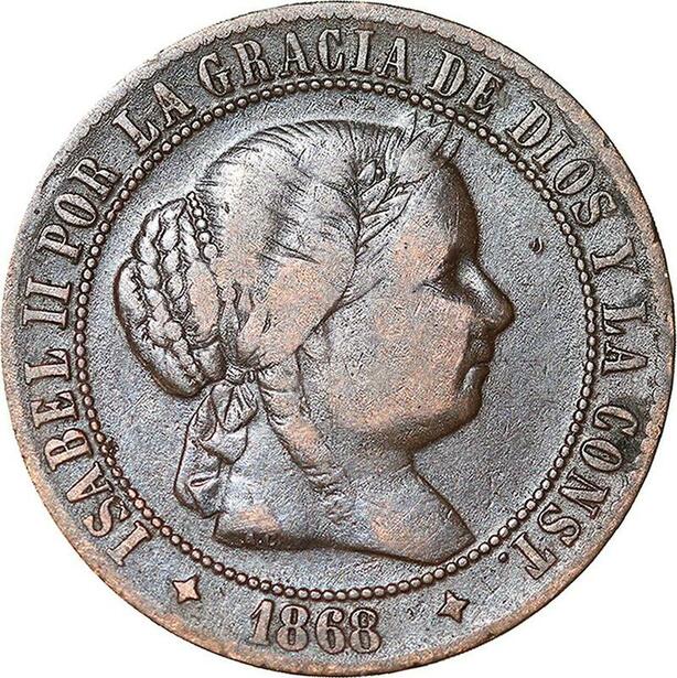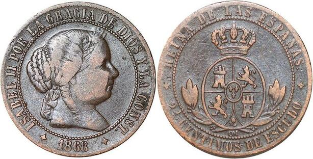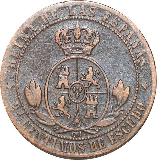 R3931 Spain 2 1/2 Centimos Isabel II 1868 OM 4 pointed star Jubia -> Make Offer