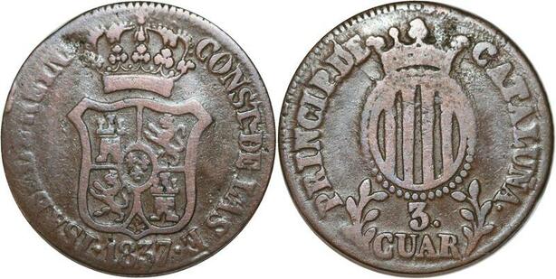 R3933 Spain Catalonia 3 Cuartos Isabel II 1837 -> Make Offer