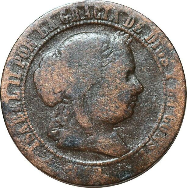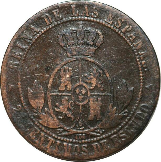 R3942 Spain 2 1/2 Centimos Isabel II 1868 OM 3 pointed star Segovia -> M Offer
