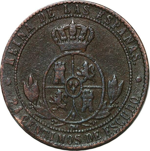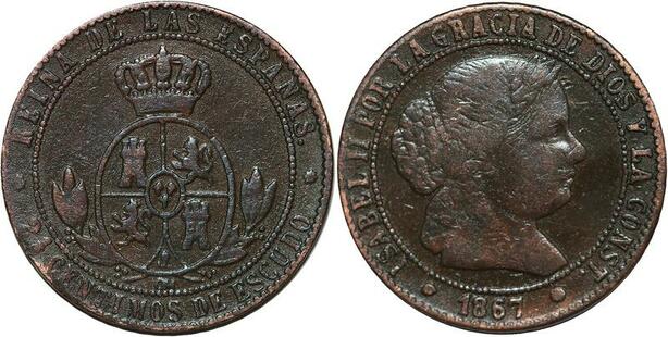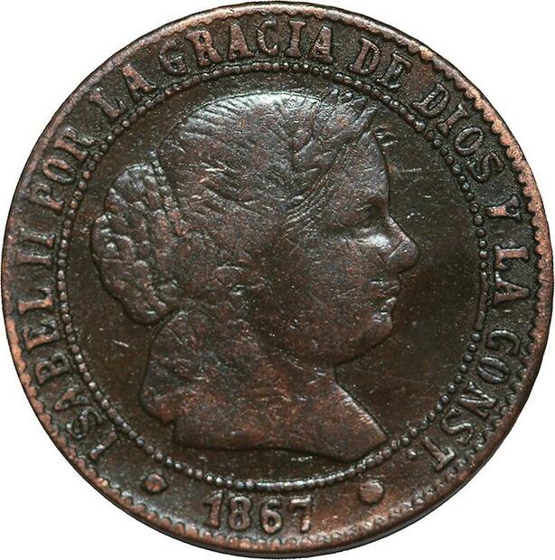 R3950 Spain 2 1/2 Centimos Isabel II 1867 OM 7 pointed star Sevilla -> M Offer