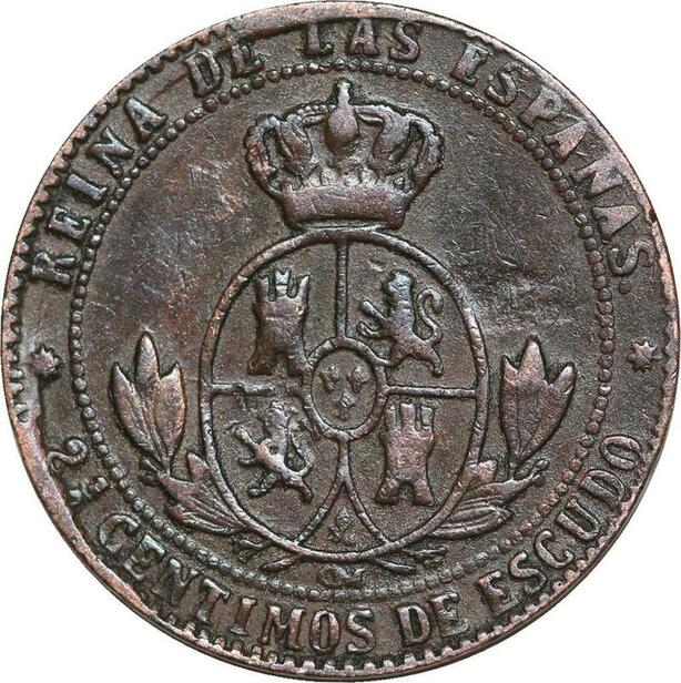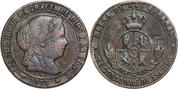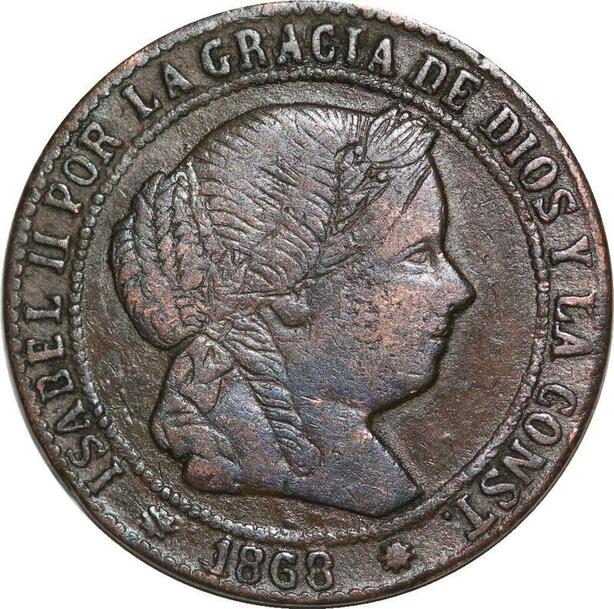 R3952 Spain 2 1/2 Centimos Isabel II 1868 OM 8 pointed star Barcelona -> M Offer