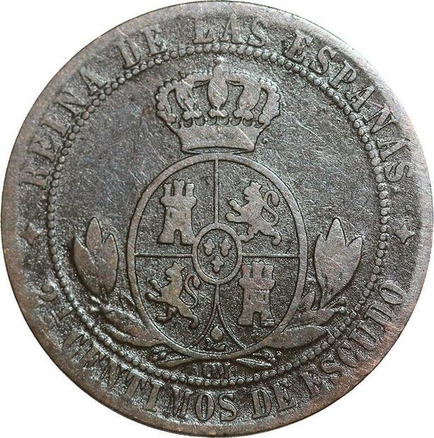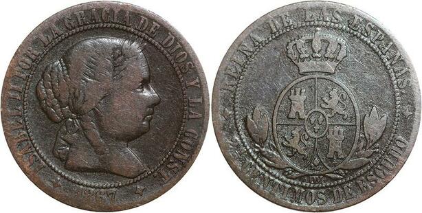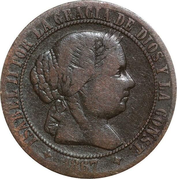 R3953 Spain 2 1/2 Centimos Isabel II 1867 OM 4 pointed star Jubia -> Make Offer