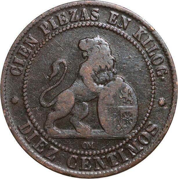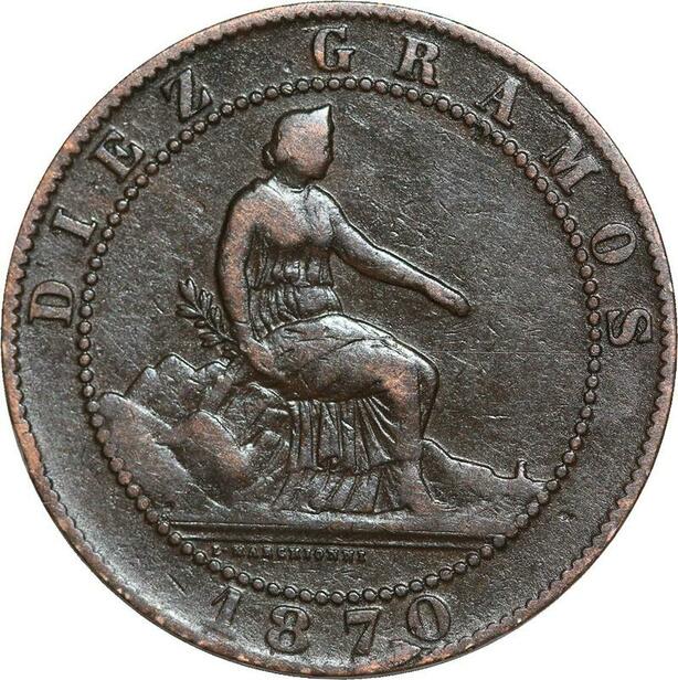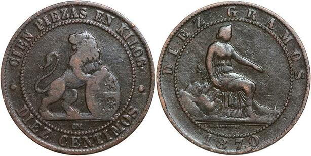 R3957 Spain 10 Centimos Provisional Government 1870 OM -> Make Offer