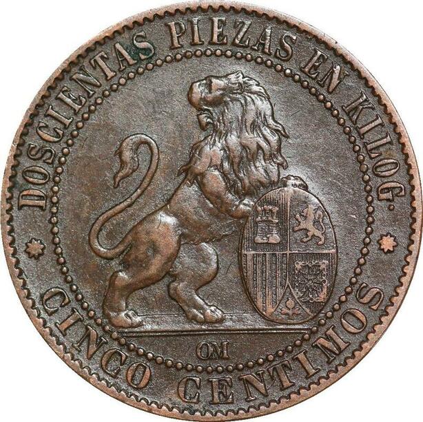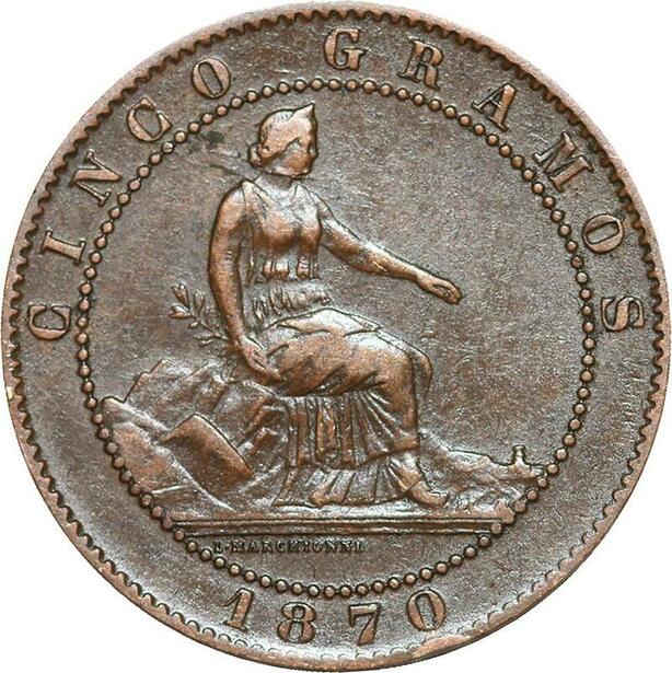 R3962 Spain 5 Centimos Provisional Government 1870 OM Quality AU -> Make Offer