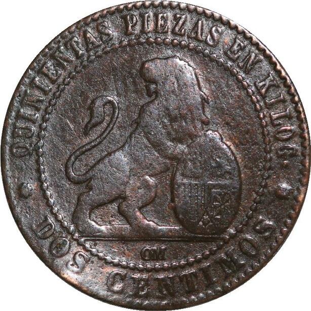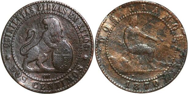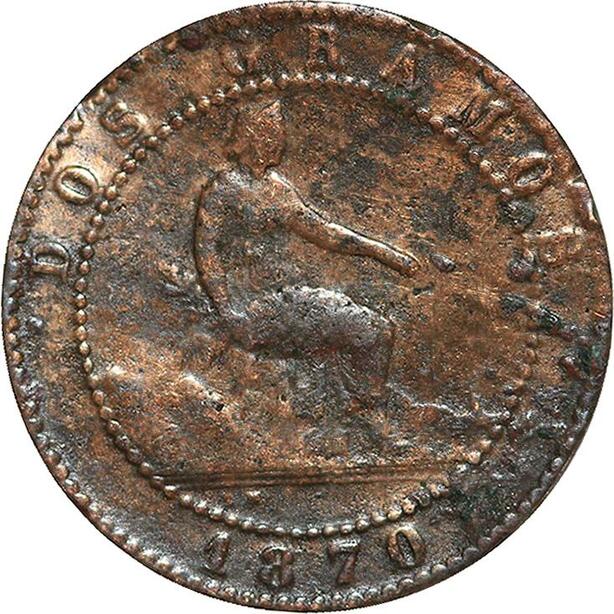 R3969 Spain 2 Centimos Provisional Government 1870 OM -> Make Offer
