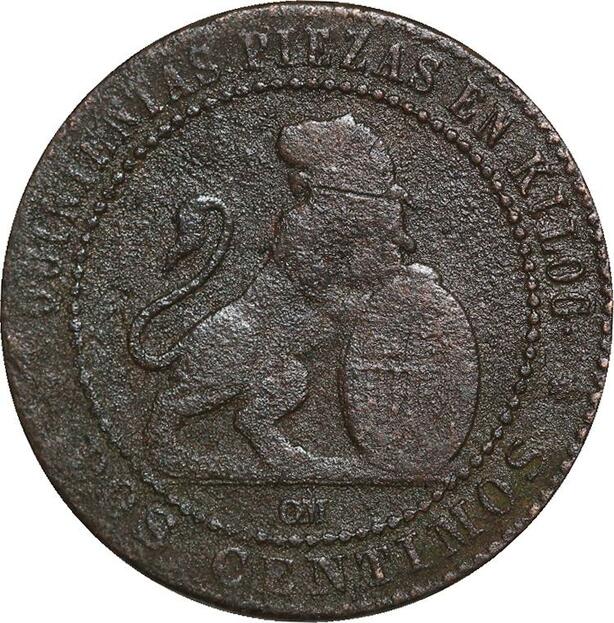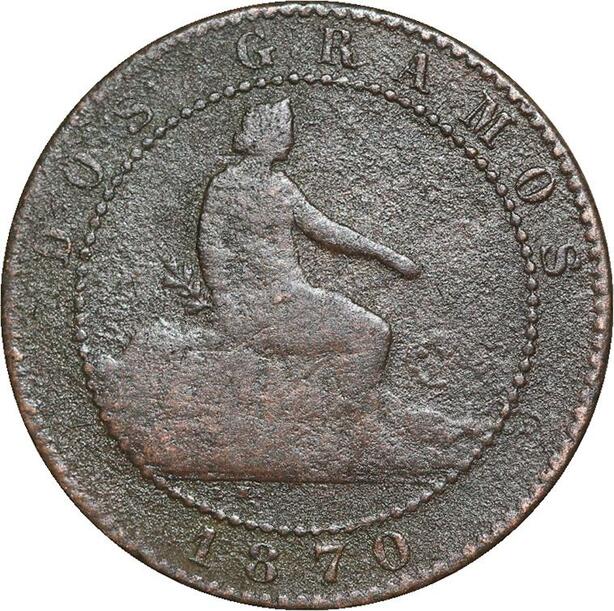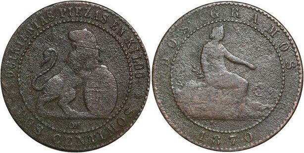 R3985 Spain 2 Centimos Provisional Government 1870 OM -> Make Offer