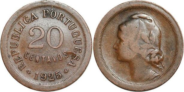 R3991 Portugal 20 Centavos Liberty Head 1925 -> Make Offer