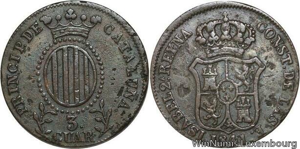 R4013 Spain Catalonia 3 Cuartos Isabel II 1841 Barcelona -> Make offer