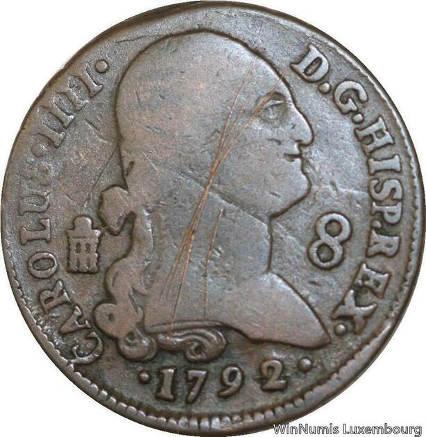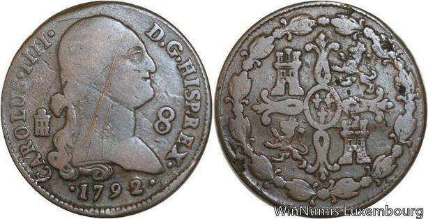 R4030 Rare Spain 8 Maravedis Charles IV 1792 Segovia -> Make offer
