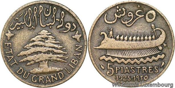 R4034 Lebanon 5 Piastres Cedar tree 1925 (a) Paris -> Make offer